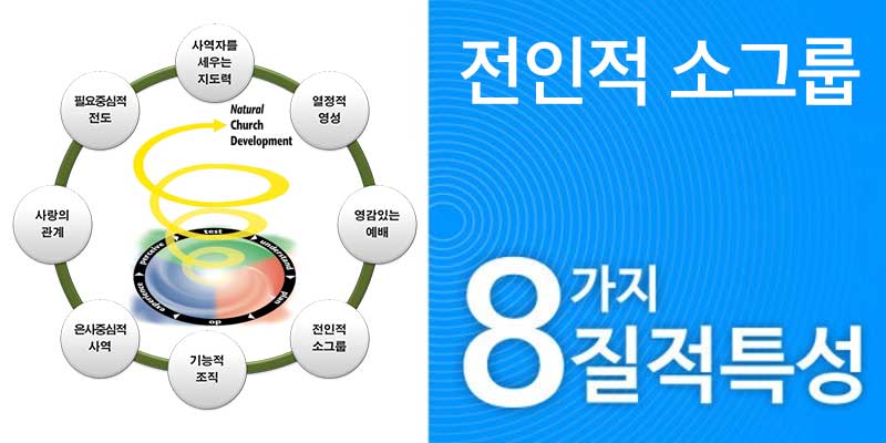 성장하는 교회는 교인 개개인이 서로 간에 친밀한 교제를 나눌 수 있고, 삶의 현실적인 영역에서 도움을 받으며, 또한 강한 영적 교제도 나눌 수 있는 소그룹 체제를 발전시켜 왔습니다. 이것은 성경에서 말하는 전인적이라는 개념과 정확히 일치합니다. 소그룹에서 사람들은 성경 자체에 대해 토론하거나 전문가의 재미있는 강해를 들을 뿐만 아니라, 성경에서 얻은 통찰을 자신들의 일상 생활에 적용합니다.