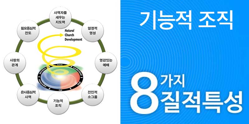 재미있는 현상은 성장하는 교회에 나타나는 8가지 특성들 중 "기능적 조직"이라는 질적 특성이 가장 논란의 여지가 있는 것으로 부각되었다는 점입니다. 그러나, 그 숨은 원리는 아주 간단합니다.