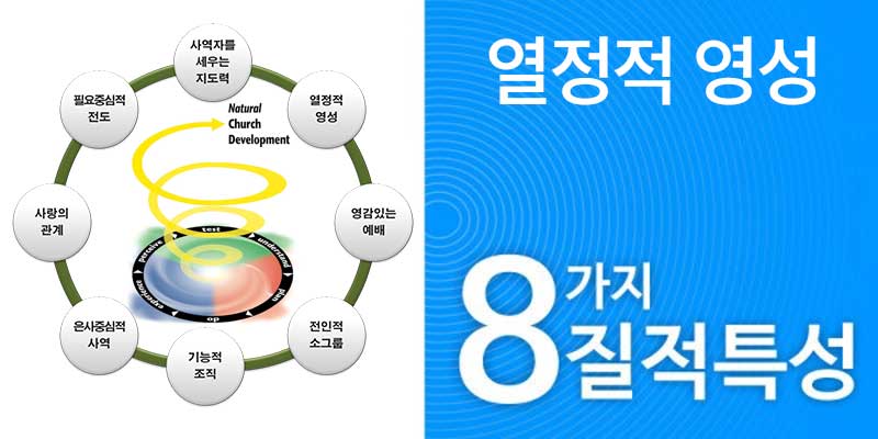 NCD의 연구 조사에 의하면, 교회 성장과 관련해서 생각해 볼 때 영성(영성이 진정한 것인 한)을 표현하는 방법이 중요한 것이 아니라, 실제로 헌신하며 사는 믿음과 뜨거운 열심이 중요한 것입니다.