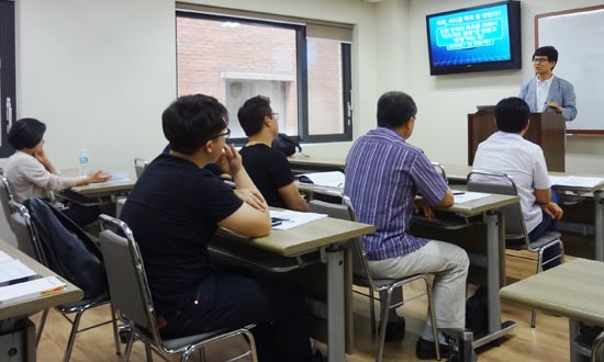 ▲NCD가 주최한 세가지사역실행워크샵에서 이근배 목사는 열정적 영성목회를 위한 큐티목회와 기도목회, 전도목회 등 세가지 색깔 사역의 실제적 전략들을 제시했다.